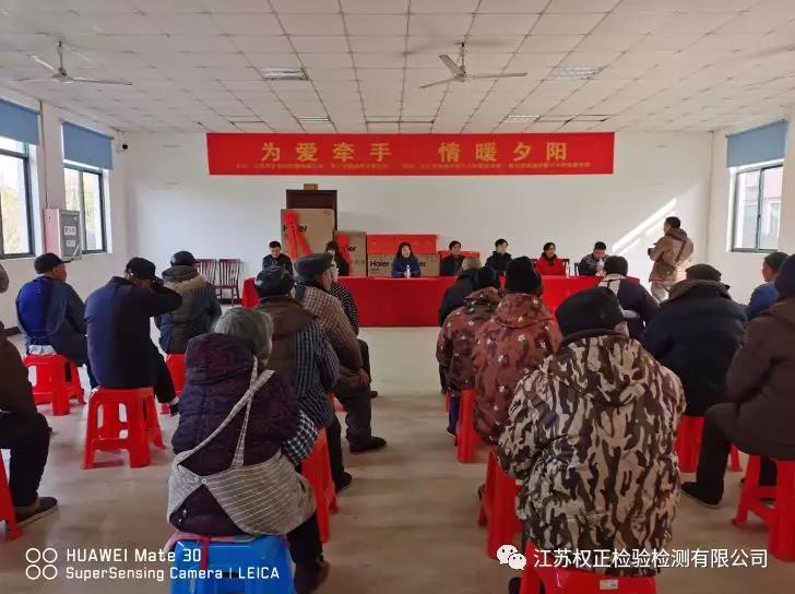 為弘揚中華民族的“敬老愛老”的傳統美德,江蘇權正檢驗檢測有限公司改變以往鼓樂齊鳴的年會方式,由董事長顧衛兵倡議,農工黨南通市委會文教總支攜手農工黨第三人民醫院支部、致公黨第三人民醫院支部、江蘇權正,12月12日下午走進興東街道敬老院,舉辦“為愛牽手 情暖夕陽”活動,將籌辦年會節省的部分資金捐贈敬老院,回饋社會。