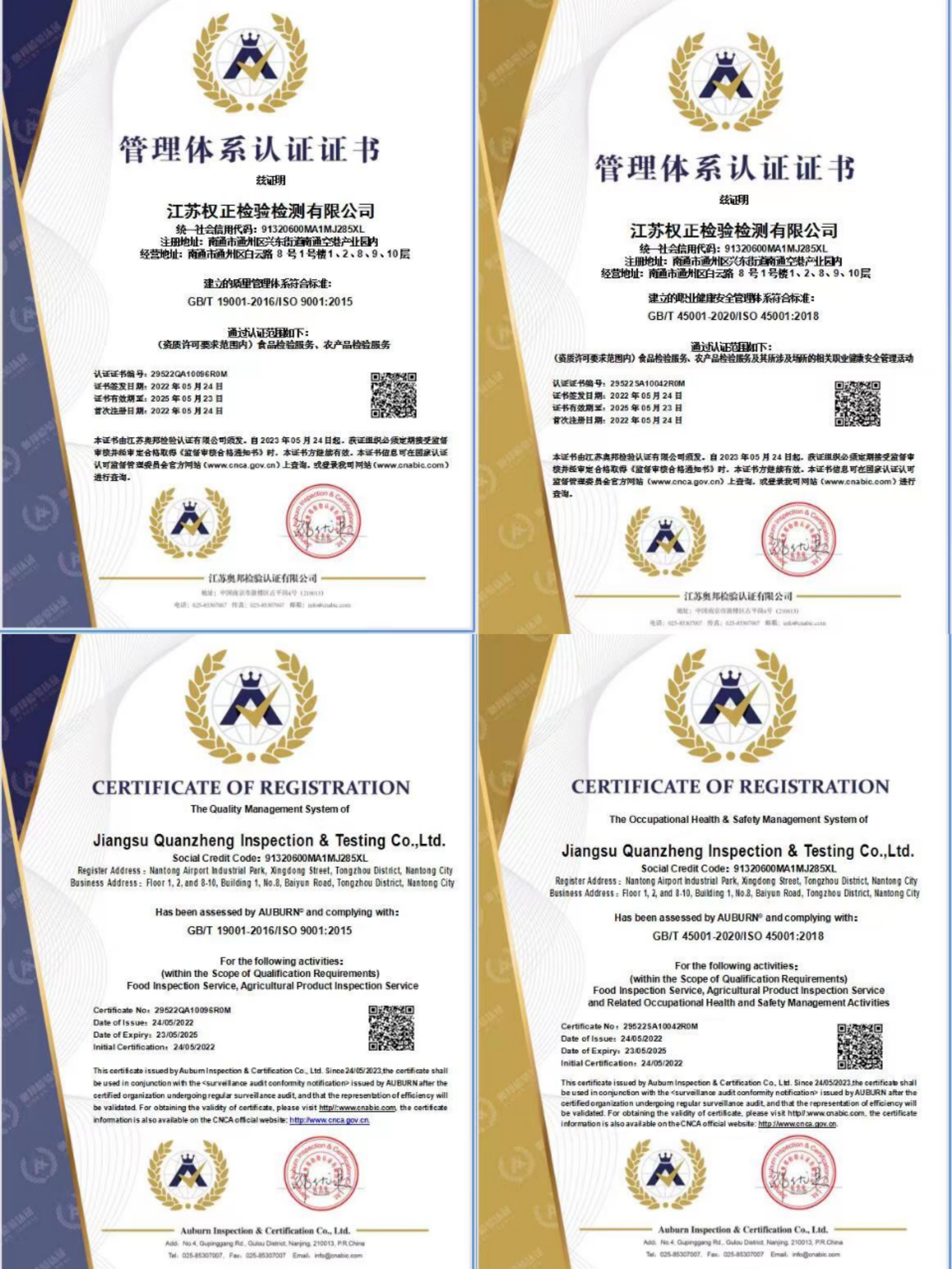 近期,在各部門的共同努力和配合支持下公司順利通過(guò)兩大管理體系的專項(xiàng)審核,喜獲ISO 9001:2015質(zhì)量管理體系認(rèn)證證書(shū)和ISO 45001: 2018職業(yè)健康安全管理體系認(rèn)證證書(shū),這標(biāo)志著江蘇權(quán)正在食品、農(nóng)產(chǎn)品等檢驗(yàn)檢測(cè)方面的規(guī)范化和標(biāo)準(zhǔn)化管理達(dá)到新的水平。